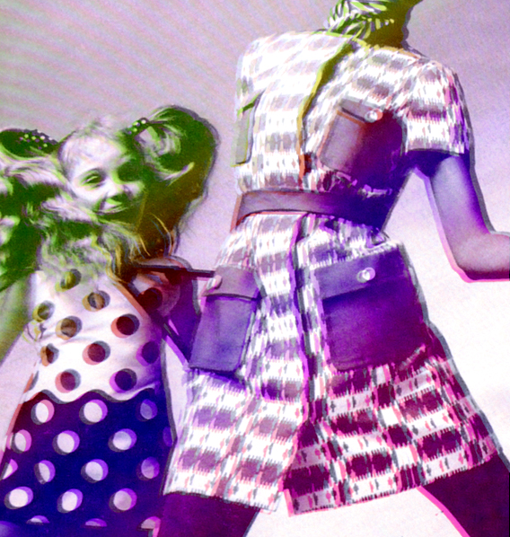 When my friend Cari moved to the East Coast last year I was fortunate enough to acquire a hefty stack of vintage fashion magazines from her. I pulled the May, 1970 issue of Harper’s Bazaar and began photographing the pages to share here on the blog. Unfortunately, very few pages were printed in color, and not long into the process I physically could not resist the temptation to recolor these black and white images, Aaryn West style. I made sure to keep my colors off-registration, as a nod to 1970s printing quality. What do you think? Canyadigit?
