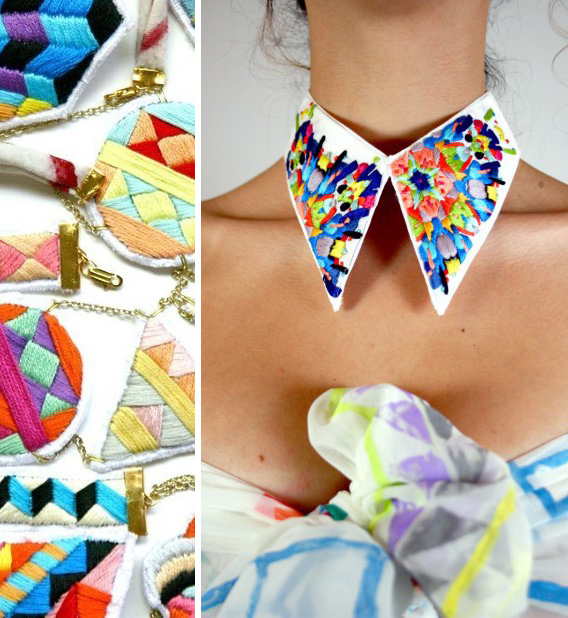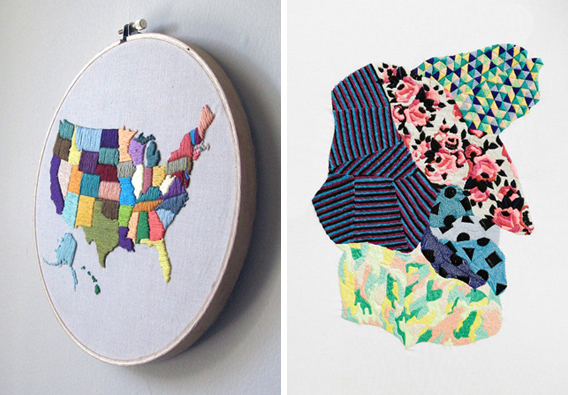 Although this textural trend isn’t entirely new, it’s so expansive that it deserves it’s own post. It only seems natural that the resurgence of prints in fashion and interior design would spawn an exploration of thread and the fiber arts, spilling over to all facets of art and design. Embroidery has become so incredibly popular, and is popping up in all kinds of unexpected places. When contrasted with flat, two dimensional imagery it creates an almost surreal juxtaposition of texture and technique. If you’re a tactile person like I am, you’ll have no problem finding ways to add a little embroidered goodness into your life.