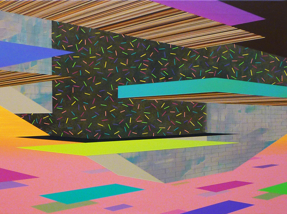 A shout out to Booooooom for featuring an artist that really floats my boat, Michael Dotson. His paintings abound with bright, contrasting colors, geo shapes, print mixing, texture for days – and all presented in a semi-surreal, retro manner. That’s pretty much a recipe for awesome, right? Check out his website to see more of his work!