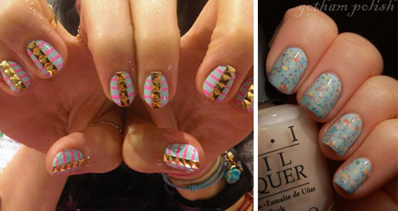 As a surface design studio, we love to see prints pop up in new and unexpected places. Nail art is a trend I’ve been seeing a lot more of lately; it’s unique and quirky, and perhaps best of all, a temporary commitment. You can get creative and attempt to paint a delicate design yourself with the help of one of these cool tutorials by Refinery 29. Or go low-maintenance and buy a design to apply at home, my favorite being these water marbling stickers in the special edition Cynthia Rowley Birchbox set. Whichever the case, endless options abound. I’m especially enamored with the celestial set down at the bottom.. simply out of this world.