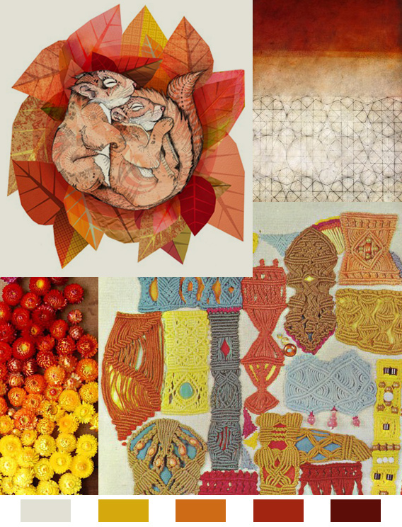 As we in the States prepare for a festive and calorie-filled week, this week’s color palette seems especially fitting. Even if you’re half a world away, these spicy colors should make you want to curl up with a fuzzy blanket, and a warm mug of something yummy. I’d say the spooning squirrels have the right idea…