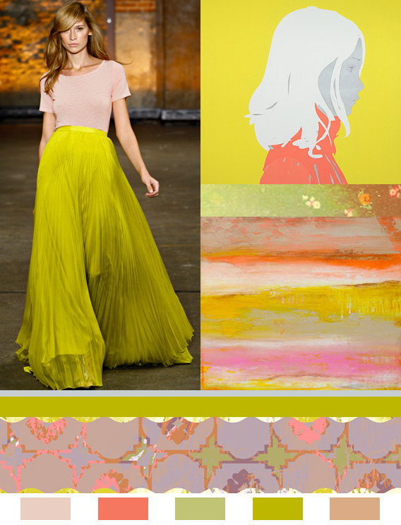 This palette is inspired by the striking colors found in Christian Siriano’s Spring ’12 collection; peach and chartreuse. It’s such a fresh and unexpected combination of hues.