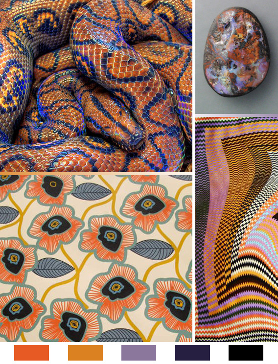 Bask in the amber glow of this week’s vintage inspired color story. This particular combination of hues has picked up in popularity again, long since the days it adorned your favorite old mushroom-and-woodland-creature covered cookie jar. Although, as you can see below, fungi and their furry and fluttery friends are still alive and well…