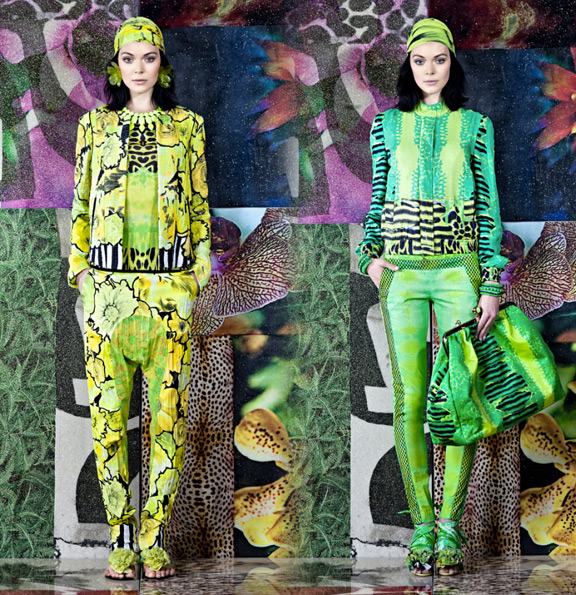 If you pay attention to fashion then you’re well aware that many designers have gone bonkers for prints. They are mixing them in unconventional ways, and saturating the body from head-to-toe in bold, colorful motifs. Just when we thought there was no possible way to up the ante a few designers had to go and prove us wrong. Below you’ll find a few examples of print-laden collections set against some very dynamic backgrounds. And apparently we aren’t the only one to notice this trend – the last set of images were composed by one of our favorite bloggers, the lovely Miss Moss, posted on her blog only yesterday. If printophelia isn’t a real word yet we think it ought to be; we are certified printophiles. Just don’t tell our health insurance, ok?