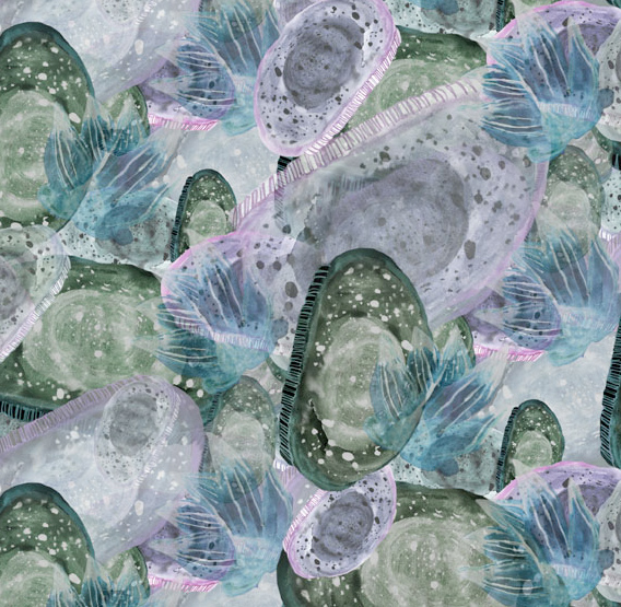 NS: My love of impressionist artists such as the greats, Monet and Renoir, has influenced my work as my style is often painterly and delicate. It’s also often abstract as I love creating energetic, sporadic mark markings and movement through my prints. Paints, inks & fine liners are the main mediums I use, though I like to experiment with photography and vectors as a means of combining hand drawings with digital art. At the moment I’m trying not to obtain too many habits and routines with designing as I feel I should always be pushing different mediums and combining new styles and techniques so that I’m always learning.