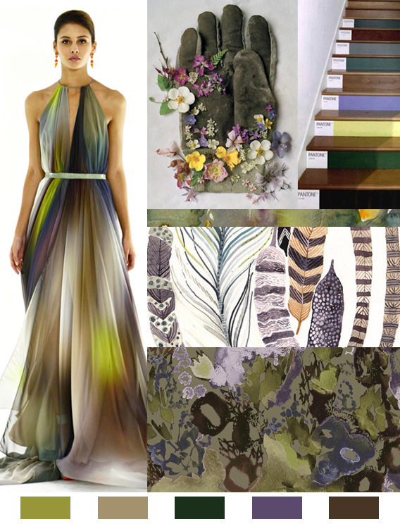 Picture an overgrown, mossy forest in the mist, and you’ll probably need to borrow a few colors from the below mood board. Earthy greens and browns with a hint of dusty lavender; we approve this palette for pretty much any season of the year.