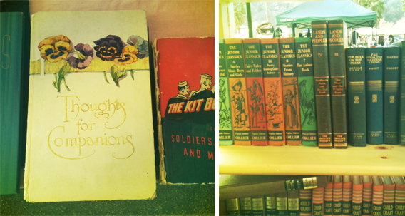 Earlier this month I made my way back to one of my favorite places on earth, the Pasadena Rose Bowl Flea Market. I was only there for a few hours, which is not even close to the time you’d need to cover the whole location. It’s such a crazy mix of old and new, junk and treasure, vintage rarities and hand crafted items. I could never have a wallet or back seat big enough to take home all of the amazing things I found there, but at least I was armed with my camera. There was such a plethora of visual inspiration that I’m going to devote a regular blog feature to these flea market finds, starting off with this selection of gorgeous books. The vintage paper back instructional book for painting on textiles had to come home with Mama, of course.
