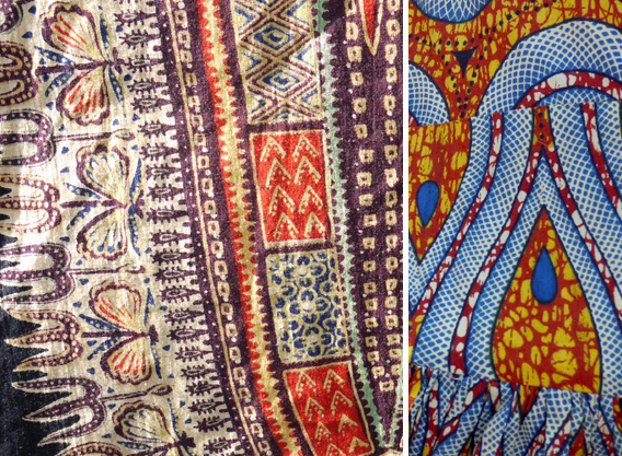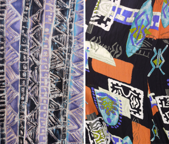 Today we’re bringing you another bundle of inspiration sourced from the vintage aisles of the Rose Bowl Flea Market in Pasadena, CA. African printing techniques and motifs have been trending recently, as seen in Burberry Spring ’12, and Marni’s capsule for H&M. Of course, the vintage vendors know this and have plenty of eye candy to entice the many hippies, hipsters, fashionistas. Oh yeah, and textile designers. duh.