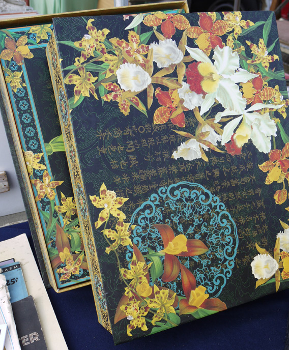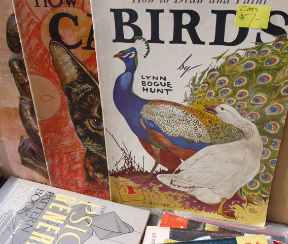 Earlier this month I made my way back to one of my favorite places on earth, the Pasadena Rose Bowl Flea Market. I was only there for a few hours, which is not even close to the time you’d need to cover the whole location. It’s such a crazy mix of old and new, junk and treasure, vintage rarities and hand crafted items. I could never have a wallet or back seat big enough to take home all of the amazing things I found there, but at least I was armed with my camera. There was such a plethora of visual inspiration that I’m going to devote a regular blog feature to these flea market finds, starting off with this selection of gorgeous books. The vintage paper back instructional book for painting on textiles had to come home with Mama, of course.