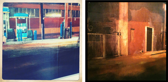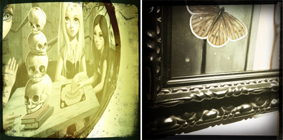 Last night was opening night for artists Liz Brizzi and Ana Bagayan at Thinkspace Galllery in Culver City, CA. If you read this blog regularly, you may already know I’m a huge fan of Liz’s gritty, textured urban-scapes [is that a word? if not, it should be]. However, the work of Ms. Bagayan, featured in the main gallery, was a pleasant discovery. Her use of light and creamy-smooth shading were breathtaking, and her quirky characters were quite endearing. The mini dinosaurs kind of made my heart melt. A lot. My hipstamatic iPhone photos certainly don’t do either artist justice in the accuracy dept., so be sure to link over to both websites to see the actual paintings.